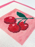 -Stitch Perfect printed 13 count mesh canvas measuring 8" x 8" with a detailed 4" x 4" cherry design